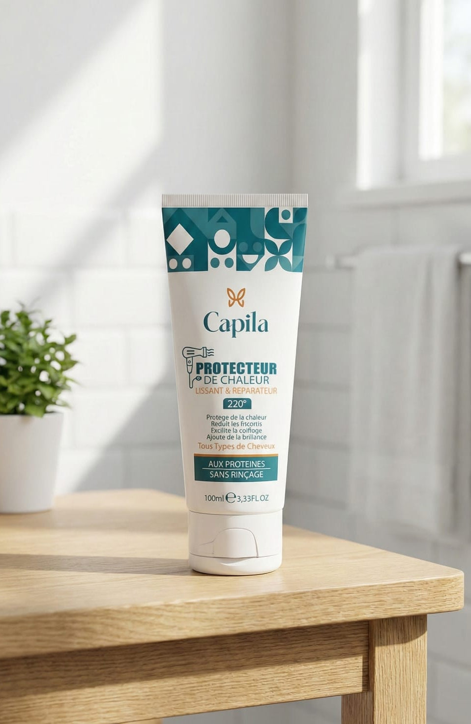 Le Protecteur de Chaleur Capila est l'allié incontournable de votre routine coiffure. Conçu pour protéger la fibre capillaire des températures extrêmes (sèche-cheveux, lisseur, boucleur), il crée une barrière invisible qui empêche le dessèchement et la casse.
